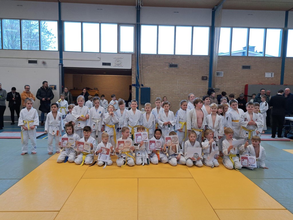 Bij iedere ronde van JC van het Oosten krijgen alle judoka´s bij de weging een presentje. Ditmaal kregen ze een tas van Woningstichting Sint Joseph uit Almelo.